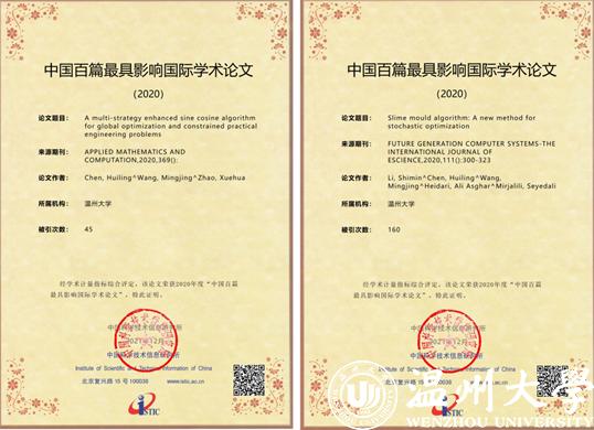 近日,科技部直属的国家级公益类科技信息研究机构-中国科学技术信息研究所发布《2021年中国科技论文统计报告》,并评选出2020年“中国百篇最具影响国际学术论文”。日本色情片 陈慧灵瓯江特聘教授团队2篇论文《A multi-strategy enhanced sine cosine algorithm for global optimization and constrained practical engineering problems》、《Slime mould algorithm: A new method for stochastic optimization》同时入选。