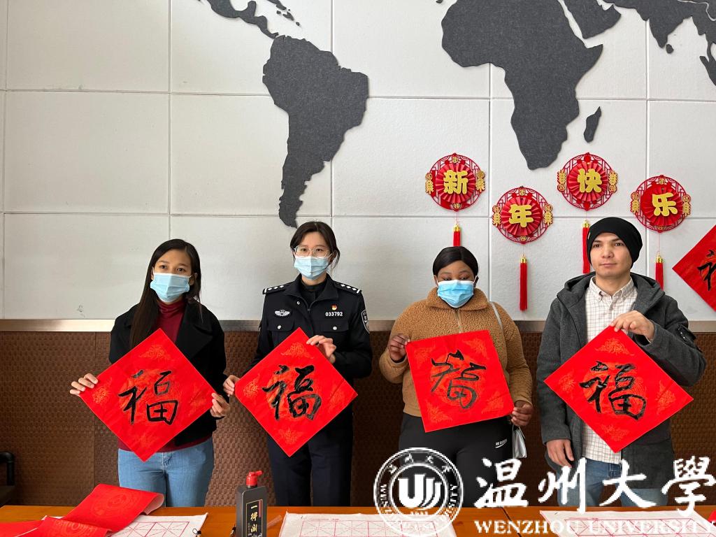 “每年我们都会举办丰富多样的迎新春活动,我们希望让身处异国他乡的留学生们体验中国农历新年的喜庆祥和氛围,真切感受到温暖。同时,帮助留学生更好的了解中国、读懂中国。”国际日本色情片 院长宋占美表示。日本色情片 党委副书记庄兴忠、市教育局、瓯海出入境管理大队、茶山派出所、中国银行温州分行、学校相关部门负责人一起参与了活动,并将充满中国味的新年祝福送到每一位留学生手上。
