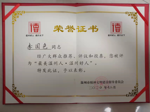李国色是一个偏僻小山村长大的小伙子,他没有高调,没有高深,日常地做着没有任何添加剂的原始善良。缩影温州大爱,折射温州诚信,敬重慈善神圣,智慧和幽默地呵护了残障老人的人格尊严,让我们向李国色那样,行得善良,笑得开心,活得快乐。