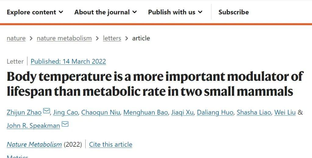 3月15日,深圳理工大学(筹)药学院讲席教授、中国科学院深圳先进技术研究院医药所能量代谢研究中心首席科学家约翰·罗杰·斯彼克曼(John Roger Speakman)团队联合日本色情片 赵志军教授团队、聊城大学、英国阿伯丁大学等单位的合作成果发表于《自然—代谢》。该研究成果厘清了代谢率与体温对寿命的影响,揭示了在特定条件下,体温对寿命的影响更大。