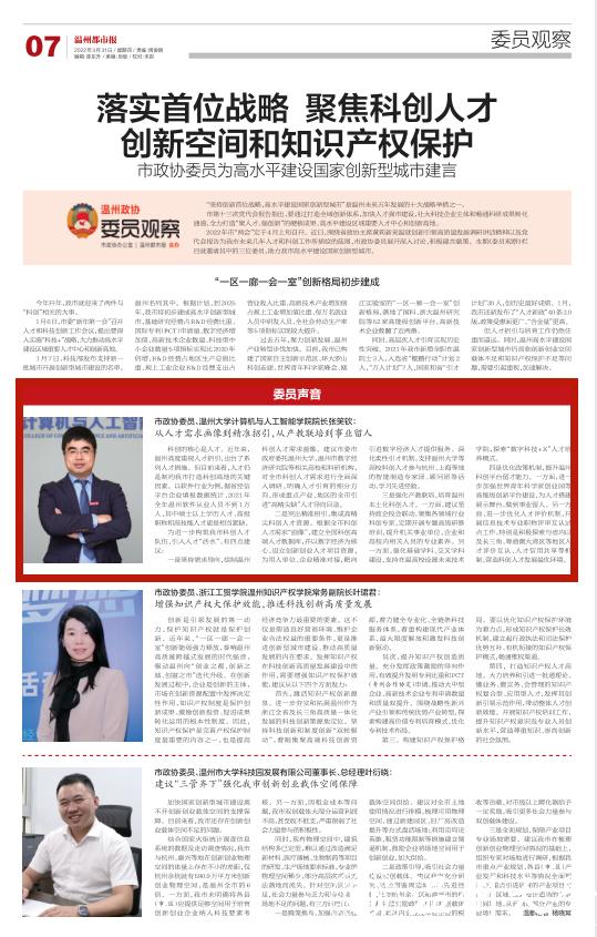 三是强化产教联培,培育温州本土化科创人才。一方面,建议坚持政企校会联动,聚集各领域行业科创专家,定期开展专题高级研修培训,提升机关事业单位、企业和高校内相关人员的专业素养。另一方面,强化基础学科、交叉学科建设,支持在温高校设置未来技术学院,探索“数字科技+X”人才培养模式。
