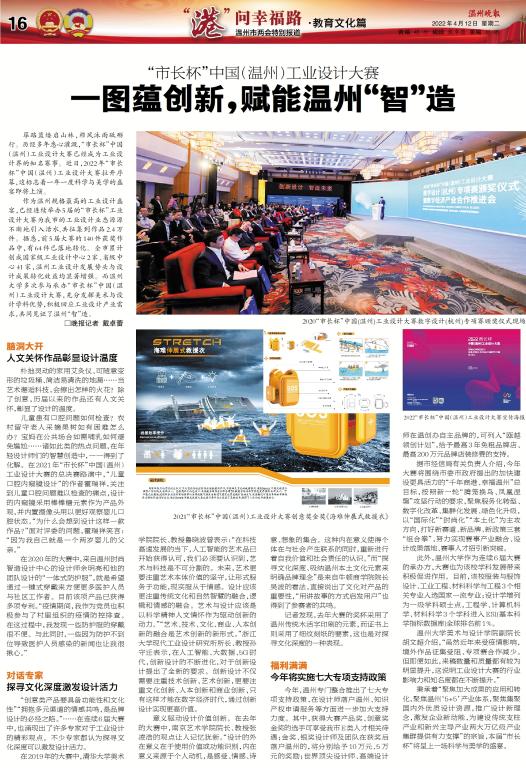 筚路蓝缕启山林,栉风沐雨砥砺行。历经多年悉心灌溉,“市长杯”中国(温州)工业设计大赛已经成为工业设计界的知名赛事。近日,2022年“市长杯”中国(温州)工业设计大赛拉开序幕,这标志着一年一度科学与美学的盛宴即将上演。