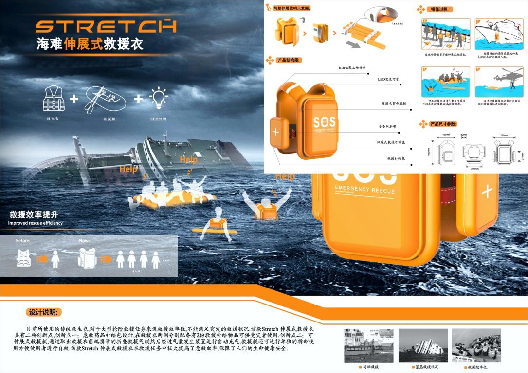 2021“市长杯”中国(温州)工业设计大赛创意奖金奖《海难伸展式救援衣》