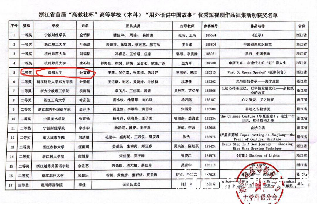 浙江省“高教社杯”高等学校(本科)“用外语讲中国故事”优秀短视频作品征集活动是在全国高等学校大学外语教学研究会的指导下,南京大学于2021年12月到2022年5月,联合高等教育出版社共同举办的一项面向全国高校学生群体、用外语传承和弘扬中华优秀文化的素质教育活动。活动旨在落实习近平总书记在党的十九大报告中提出“讲好中国故事,传播好中国声音,展现真实、立体、全面的中国”的重要指示,发挥新时代大学生良好的语言文字功底和视觉素养,用外语讲好中国故事,让国际社会对中国独特的历史传统、国情民风、中华文脉有深入的了解,让世界广为认识、理解和认同中国道路、中国精神和中国价值,为构建对外话语体系、中国叙事体系和国际文化传播体系贡献青春力量。