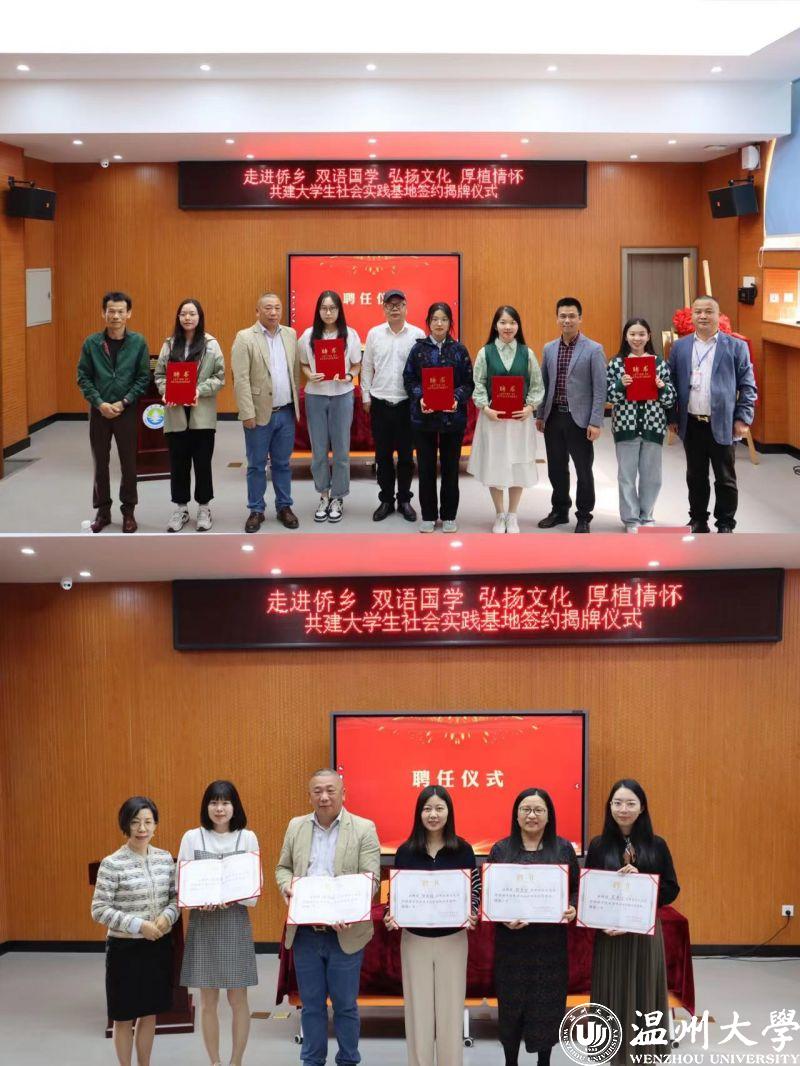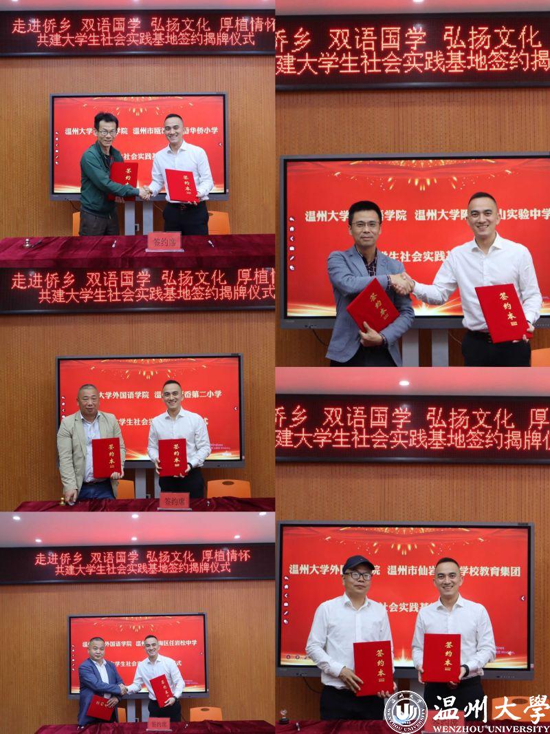 随后,外国语学院党委副书记陈勃代表温大外国语学院分别与5所侨乡学校校长签订共建大学生社会实践基地协议。