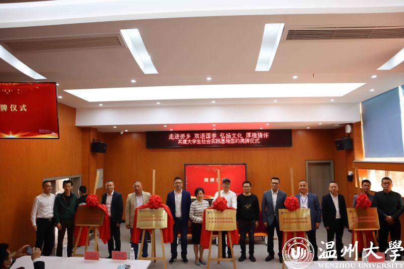 与会各位领导、侨乡学校校长共同为实践基地揭牌。