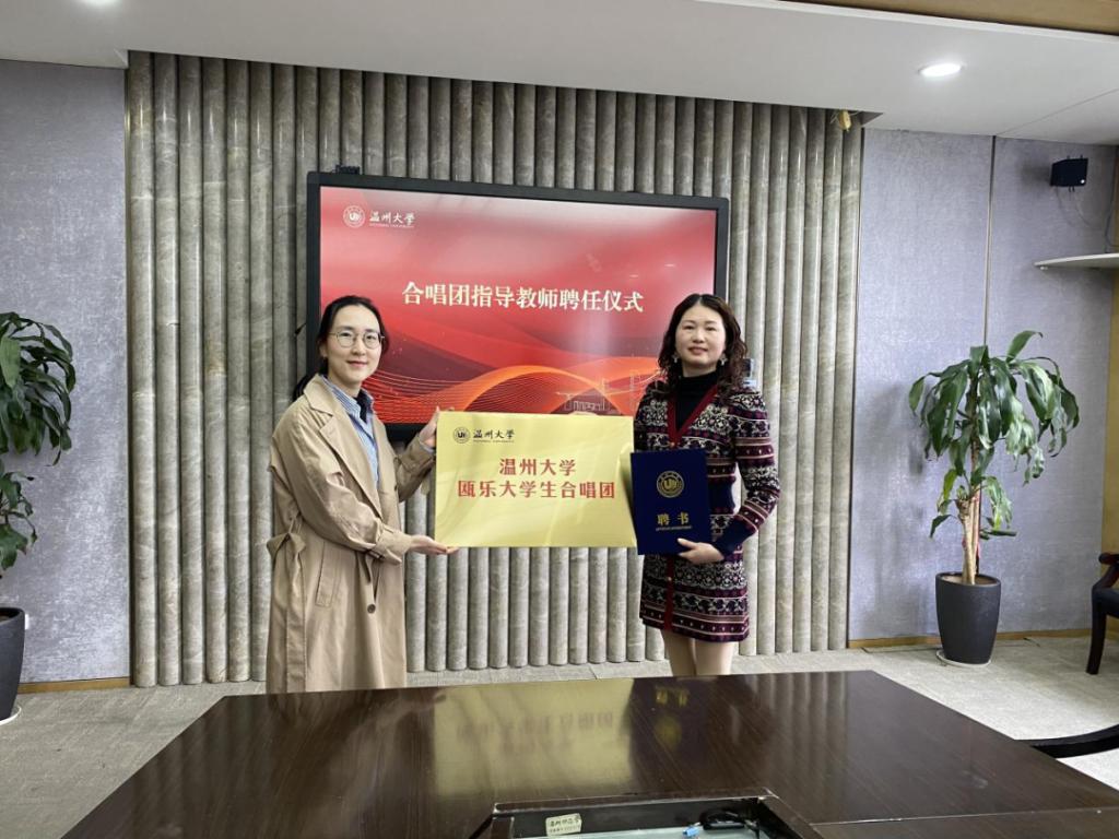 陈恩清(右)代表合唱团接过“瓯乐合唱团”授牌。