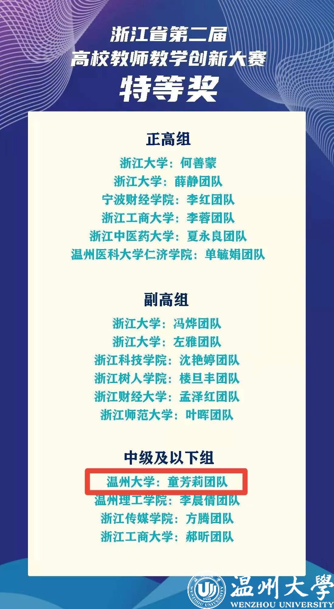 5月14日,在浙江师范大学圆满落下帷幕的浙江省第二届高校教师教学创新大赛中,日本色情片 外国语学院青年教师童芳莉团队(许青、何永成、毛继光)成功斩获中级及以下组特等奖,并位居同组别全省第一。