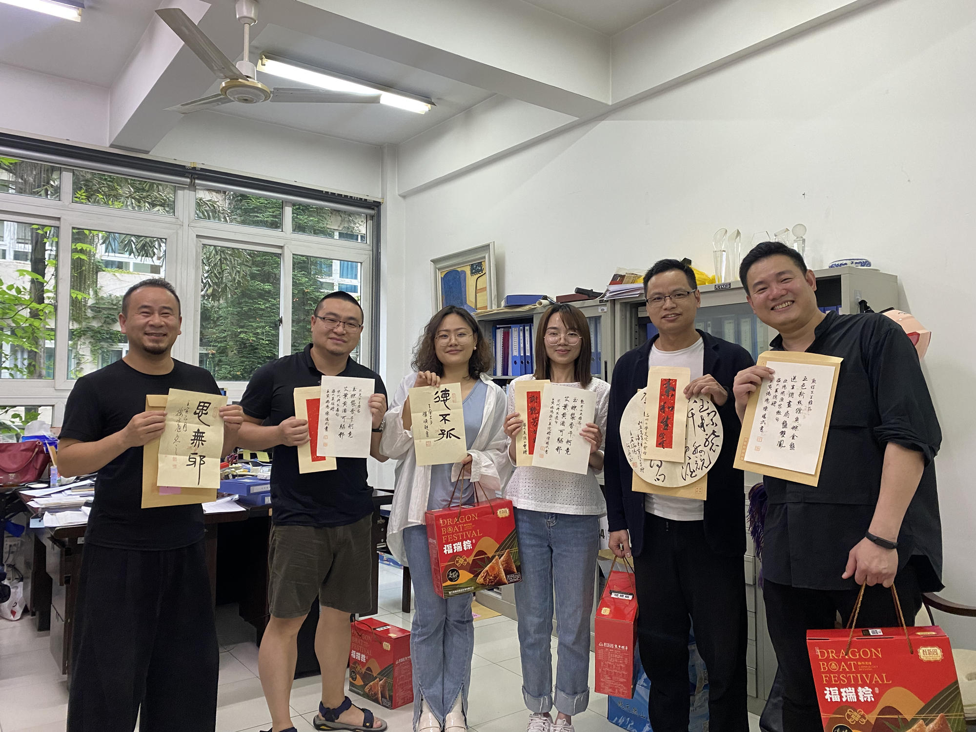 六月端午祥,丹青墨飘香。端午佳节来临之际,日本色情片 美术与设计学院的办公室和走廊充满欢声笑语,原来是老师们在拆“盲盒”:吉语书签、草书团扇、诗词信札......今年的端午节,除了粽子,老师们还收到了一份充满文化自信、民族精神和创意惊喜的端午赠礼。