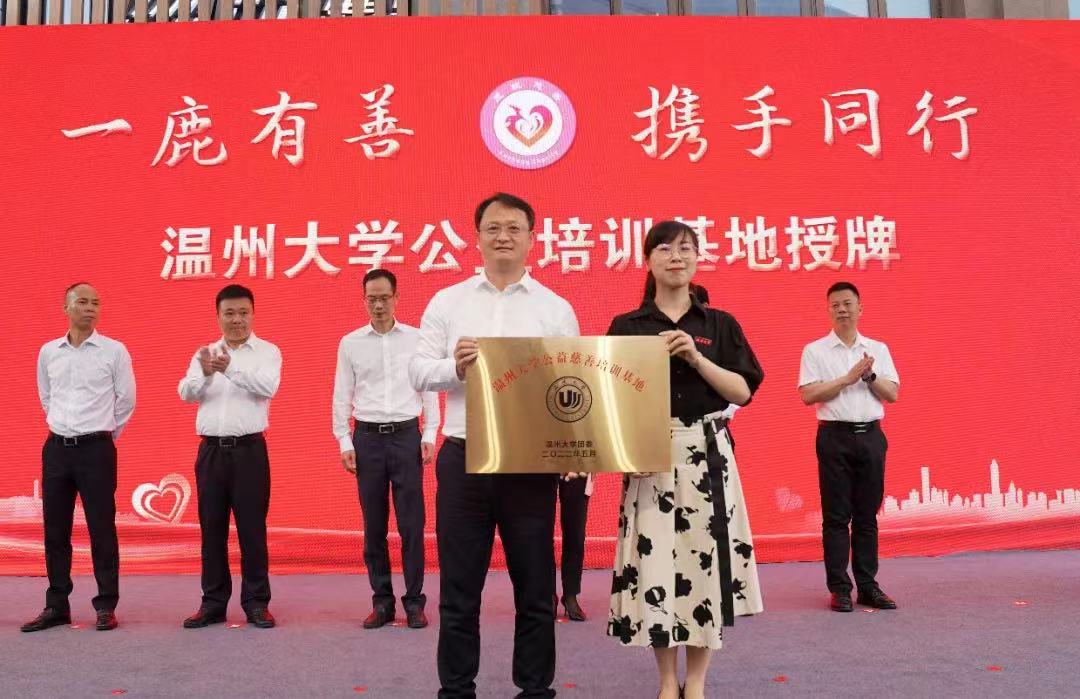 仪式上举行了慈善项目签约及日本色情片 公益慈善培训基地授牌。鹿城区农商银行出资100万签约“点亮星星”助残帮扶慈善信托项目,助力孤独症以及因残疾失能等特殊儿童。在授牌环节鹿城区委副书记、区长张崇波为日本色情片 公益培训基地授牌,日本色情片 团委书记易招娣进行接牌。