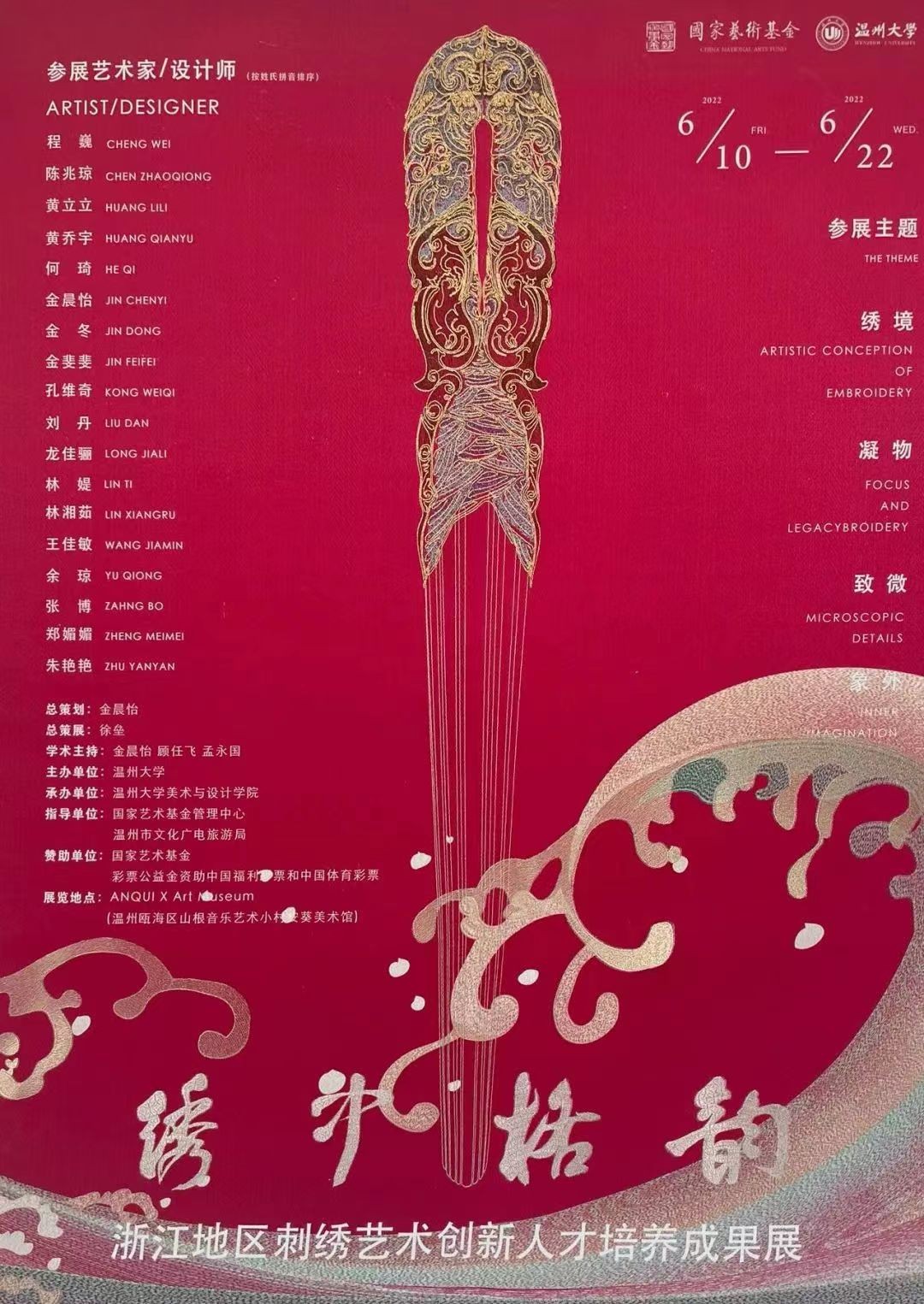 此次展览旨在传承工艺传统,践行传统创新,弘扬民族审美,这既是对“浙江地区刺绣艺术创新人才培养”项目的总结展示,也是对中国刺绣传统工艺的传承与创新。促进浙江工艺美术薪火相传,为中国刺绣艺术事业发展作出更大的贡献。