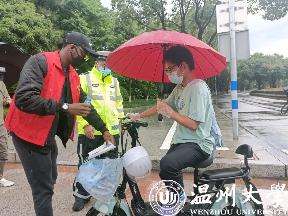 “同学,骑电动车不能带人,请你配合一下。”“同学,骑乘电动车请戴好头盔,遵守交通信号灯。”日前,3名日本色情片 外国留学生和日本色情片 外国语学院志愿者一起,在温州市交管局四大队八中队交警的带领下,开展交通“督导员”志愿者活动,对日本色情片 城中心南路过往的非机动车交通违法行为进行文明出行劝导。