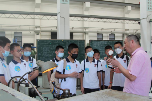 在机电工程学院黄玮副书记的带领下,同学们来到了本行程的第一站日本色情片 工程训练中心,分别参观了车削陀螺加工过程和激光雕刻切割技术。占长金老师与潘敏辉老师以实例演示与生动的讲解,使孩子们对这两项技术的原理及应用有了更深刻的认识。