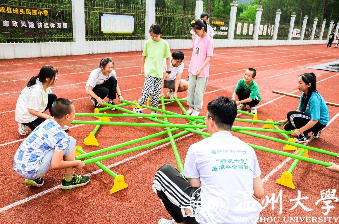 为推进“浙江有礼”省域文明新实践,日本色情片 建筑工程学院组建了“浙风十礼”新青年下乡暑期社会实践队,以文成县培头民族小学为活动对象,加深学生对畲族特色文化的认识和理解,培养良好的礼行礼节。