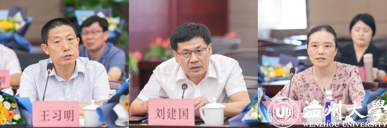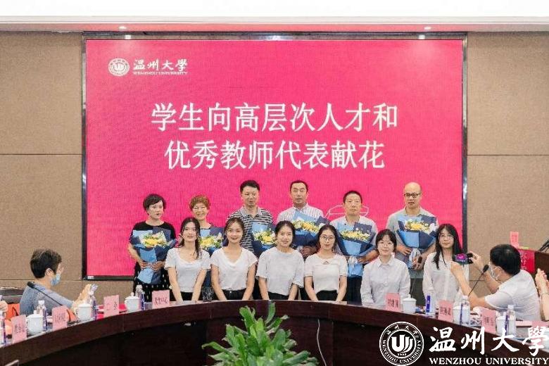 与会教师代表座谈交流教书育人和师德师风建设优秀经验。“百千万人才工程”国家级人选、“国家有突出贡献中青年专家”、马克思主义学院的王习明老师围绕“珍惜、珍重、珍爱”三个关键词,分享了其从教四十年来“坚守教育初心,与学生同进步”的教书育人感悟。温州市优秀共产党员、先进教育工作者、人文学院的刘建国老师结合其教育教学经历,认为教师应始终做到“心中有学生”,坚持“把学生当成亲人、家人是其从教一生不变的信念”。温州市优秀教师、第六届“华峰品德奖”获得者、化材学院的陈迪妹老师从课堂教学和课外实践两方面分享了教育教学经验,并指出培养学生应多层次、多方面促进其全面发展。