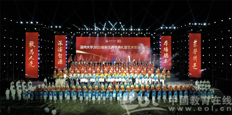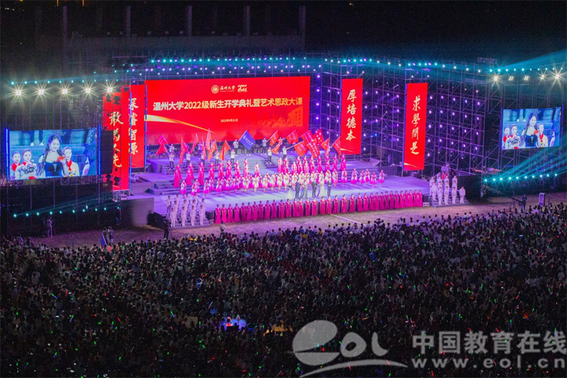 为了全面推进“大思政课”建设,构建“三全育人”工作格局和“五育并举”培养体系,进一步创新思政课育人载体,丰富思政课育人内涵,以艺术之形丰富教学内涵,以艺术之美浸润时代新人,本次开学典礼还特别举办了一场别开生面的艺术思政大课,聚焦《温大·梦起航》《瓯越·忆乡情》《华夏·铸辉煌》三个篇章,开启新生温大第一课。