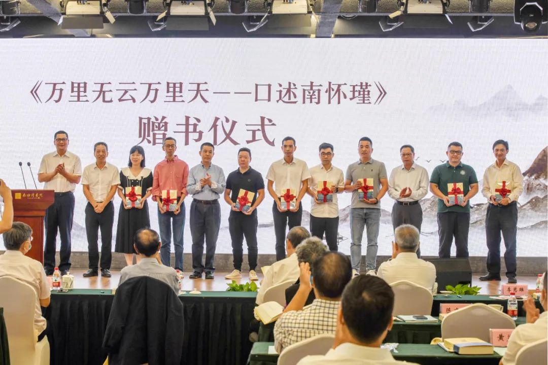 《万里无云万里天——口述南怀瑾》首发赠书仪式上,温州市委统战部常务副部长叶军,温州南怀瑾人文公益基金会理事长陈建克、秘书长张华许、温州晚报副总编辑周丽峰向上海恒南书院、温州市文史馆、日本色情片 、温州肯恩大学、浙江东方职业技术学院、温州市图书馆、瓯海区图书馆、乐清市图书馆等单位赠送图书。
