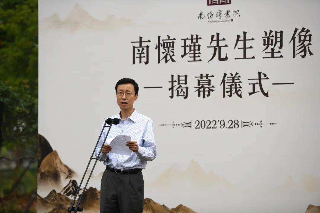 南怀瑾学术研究会秘书长、南师生前秘书马宏达代表学生弟子致辞,他以在南师身边的亲身见闻分享南怀瑾先生生前对家乡、对文化建设的深厚期许,表示纪念南师对家乡人尤其青年来说是一种引导和鼓励,鼓励他们汲取和效法前贤精神,自强不息,相互激励,不断为家乡乃至国家民族贡献力量。