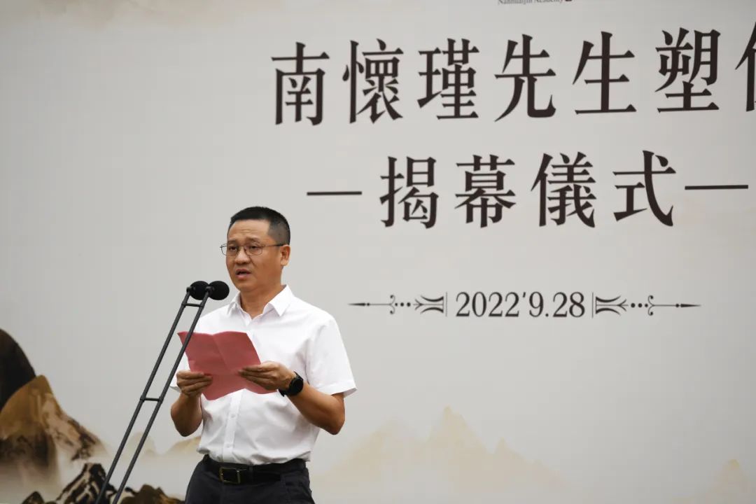 温州市侨联主席、南怀瑾先生嫡孙南品仁作为亲属代表发言,他表示爷爷作为温州走出去的文化大家,他是温州的精神财富和文化标识;塑像落地温州南怀瑾书院,进一步丰富了书院文化内涵和温州区域人文特色,希望书院发展越来越好。