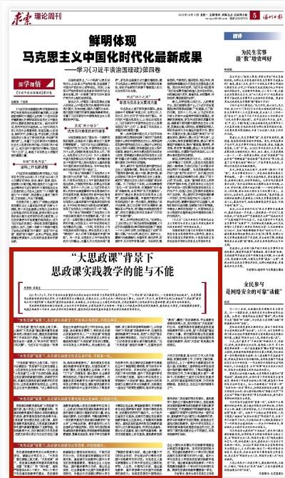 2021年3月6日,习近平总书记在看望参加全国政协会议的医药卫生界教育界委员时指出,“‘大思政课’我们要善用之,一定要跟现实结合起来”。这是强调思政课教学要理论结合实际,不仅要将现实生活请进来,还要走出去,让学生走向广阔的社会大舞台。2022年7月25日,教育部印发的《全面推进“大思政课”建设的工作方案》明确“大思政课”建设的总体要求、具体做法,为办好社会主义特色的思政课、为思政课教师上好思政课作出整体部署、提出新目标和新要求。