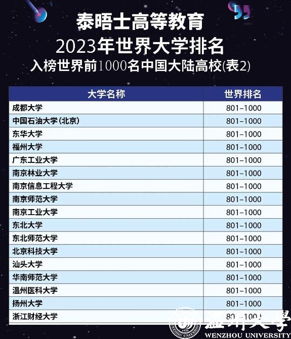 泰晤士高等教育世界大学排名是全球唯一一份对研究密集型大学的所有核心任务进行评判的全球绩效表,这些核心任务包括教学、科研、知识转移和国际展望。使用13个经过仔细校准的绩效指标。