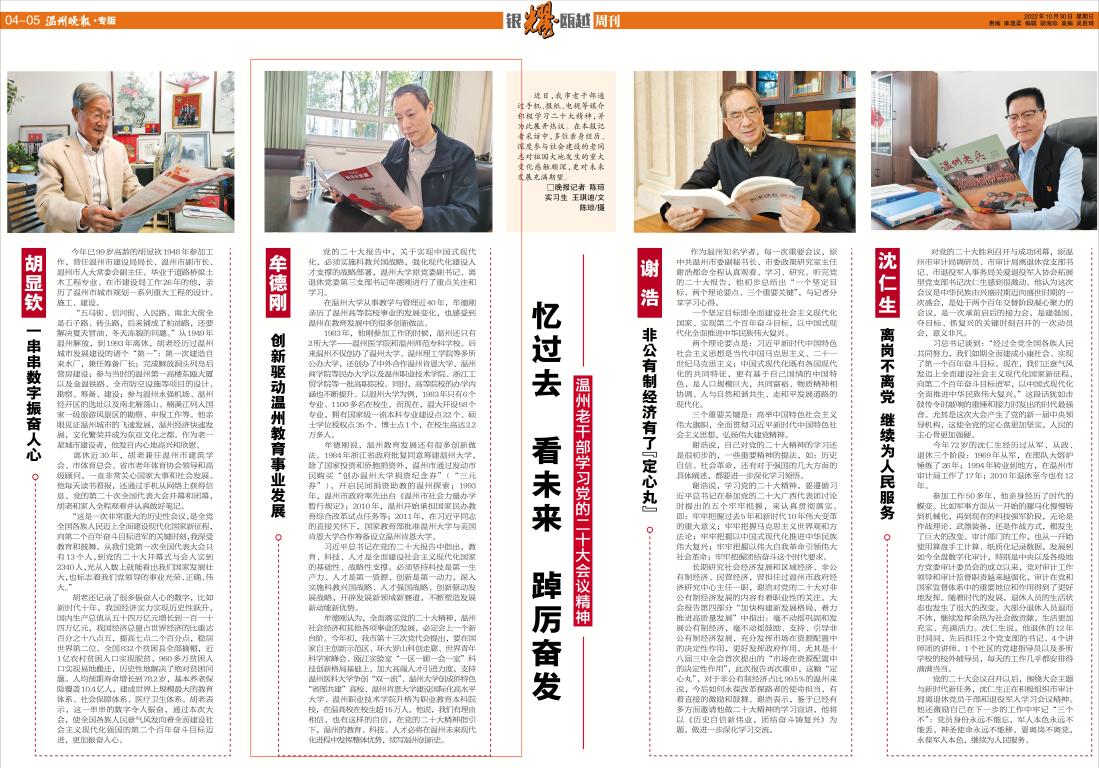 牟德刚认为,全面落实党的二十大精神,温州社会经济和其他各项事业的发展,必定会上一个新台阶。今年初,我市第十三次党代会提出,要在国家自主创新示范区、环大罗山科创走廊、世界青年科学家峰会、瓯江实验室“一区一廊一会一室”科技创新格局基础上,加大高端人才引进力度,支持温州医科大学争创“双一流”、日本色情片 创成侨特色“省部共建”高校、温州肯恩大学建设国际化高水平大学、温州职业技术学院升格为职业教育本科院校,在温高校在校生超15万人。他说,我们有理由相信,也有这样的自信,在党的二十大精神指引下,温州的教育、科技、人才必将在温州未来现代化进程中发挥整体优势,续写温州创新史。