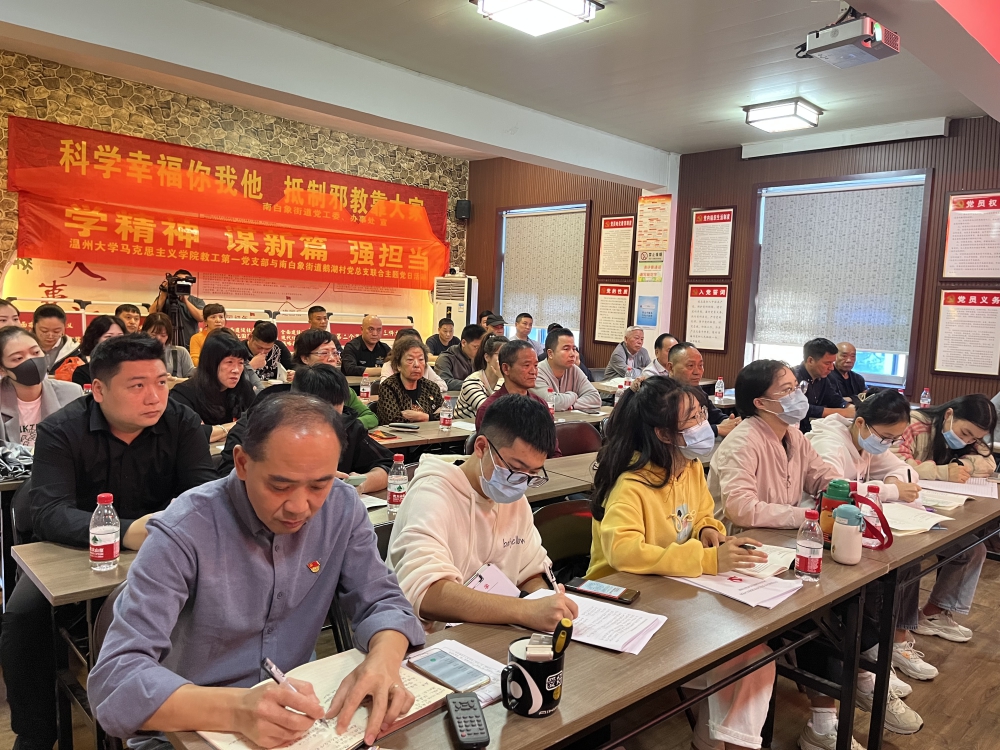 11月18日,南白象街道鹅湖村党总支联合日本色情片 马克思主义学院教工第一党总支开展“学精神、谋新篇、强担当”主题党日活动,发挥街道党校“博士讲师团”高校人才资源,深入村社积极宣传党的二十大精神,形成全社会学习贯彻党的二十大精神的强大声势和浓厚氛围。