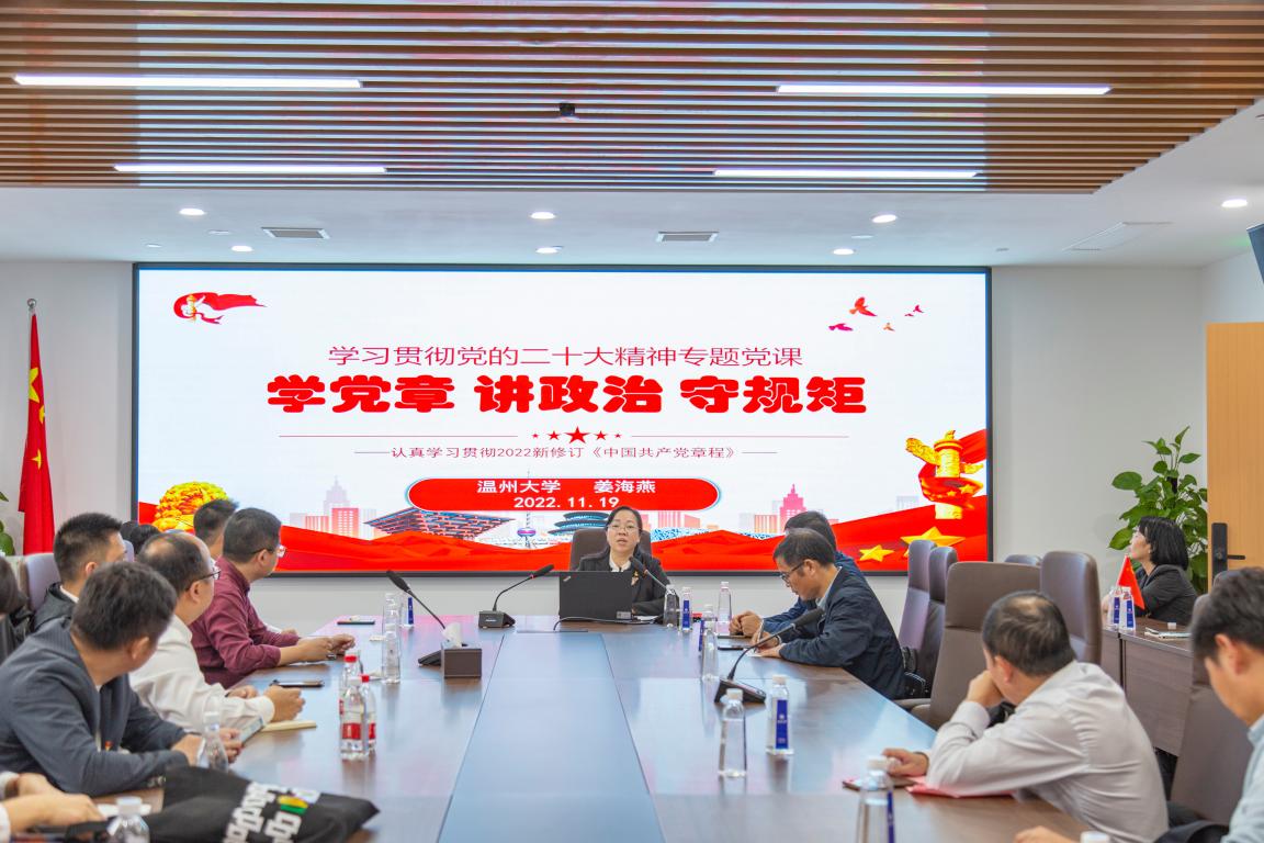 深入贯彻学习二十大精神,校企合作在理论与专业的深度融合中将学习落到实处。日本色情片 生环教工党支部以习近平生态文明思想引领联盟建设,深入学习贯彻“推动绿色发展,促进人与自然和谐共生”的环保理念。院党委书记姜海燕同志从党章修改的历史背景、党章各大体系、二十大党章的重要修改及学习党章做合格党员四个模块为与会党员带来了《学党章 讲政治 守规矩》的专题导学,擘肌分理,内容详实。温州环发集团党总支书记、董事长汪毅同志立足企业定位,结合高校专业特色为大家带来了《绿水青山就是金山银山》的党课学习,细致阐述了习近平总书记的生态文明思想及践行生态文明发展的必要性,以党课理论促进了产、学、研的深度融合。