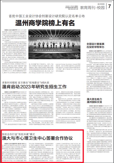 此外,“医校共建”协议中还特别加入辅 导员现场观摩医生评估、三方(心理中心、学 院、医院)危机个案会商、组织辅导员进入医 院学习交流等内容,“医校共建”将成为该校 辅导员心理育人能力提升的重要途径。