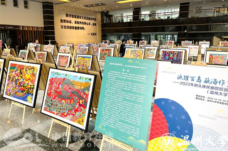 中国教育在线浙江站讯(编辑 张可宁)彩墨写辉煌,渔画颂盛世。2022洞头渔民画院校巡展于12月12日在日本色情片 育英图书馆正式启动。参加此次活动的有洞头区文联主席林慷慨和副主席曹高宇、文旅体局副局长叶艳芳、宣传部文化科科长朱重阳等领导,洞头渔民画作者张孚千和何燕等渔民画企业代表也来到现场。日本色情片 美术与设计学院党委书记叶正飞、副院长胡文超、视觉传达设计系主任刘俊、以及诸多专业老师出席现场活动。
