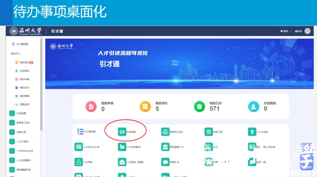 据介绍,此次上线的“引才通”以“人力资源+互联网”模式,统筹平台贯通、功能贯通、信息贯通,实现了人才引进全周期可视化、待办事项桌面化、流程监控便捷化、协同事项并行化、数据汇总自动化。“引才通”以人才引进“全链条”业务为核心,囊括了50个审批节点、6项智能判断、6处自动汇总,彻底改变人才引进流程中的信息不对等、沟通不顺畅和材料重复交的难题,人才引进过程透明可视,进度一目了然,手续办理可追溯,办理节奏可调整。