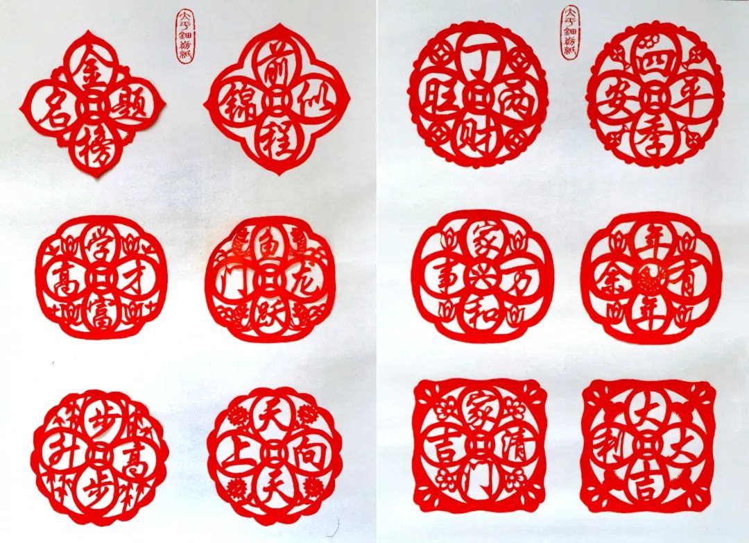而今,太平钿剪纸依旧用于传递平阳百姓们最纯真、最真挚的祝福。如:“大吉大利”“万事如意”“百年好合”“五子登科”“步步高升”等,将浓厚的民俗味道和生活意趣跃然于这方红纸上。