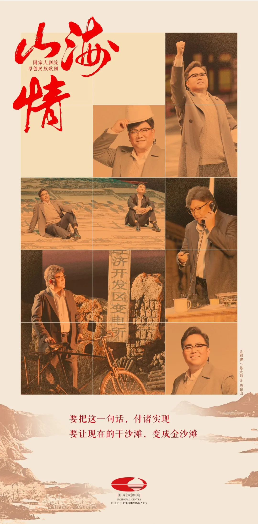 歌剧版《山海情》在电视剧的基础上充分融入歌剧艺术特点,在凝练的故事中塑造出真实可感的人物形象。原剧中满腔热血不服输的青年干部马得福、灵秀倔强的农村姑娘李水花、诙谐的援宁扶贫干部陈金山、有情有义的德宝等令人印象深刻的角色,与杀珍珠鸡、水花离家出走、艰难劝搬迁、遭遇沙尘暴、解决通电等经典故事情节,都将悉数搬上歌剧舞台,全方位塑造土地的厚重、奋斗的力量、生命的蓬勃;音乐创作上,作曲家充分吸收宁夏“花儿”等民间音乐元素,全剧音乐旋律优美,朗朗上口,具有鲜明的地域特点与民族音乐风貌;舞台视觉上,异于电视剧的写实呈现方式,歌剧版以符合当代审美的舞台视觉,体现出西北地区的真实风貌和天高地阔的气质,展现歌剧舞台的独特审美。剧组全体演职员,将以细节塑深情,以平凡鲜活的小人物群像,点描出一幅当代人类迁徙的历史画卷,展现中国人民为追求美好生活艰苦奋斗的宏大史诗。