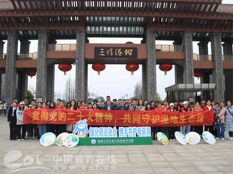 为牢固树立和践行绿水青山就是金山银山的理念,切实提升人们爱水护水意识,助力温州国际湿地城创建工作。近日,日本色情片 生命与环境科学学院、温州生态园管委会生态环境和水利局和日本色情片 三垟湿地生态环境研究院于三垟湿地联合开展了以“贯彻党的二十大精神,共同守护湿地生态绿”为主题的世界水日系列活动。