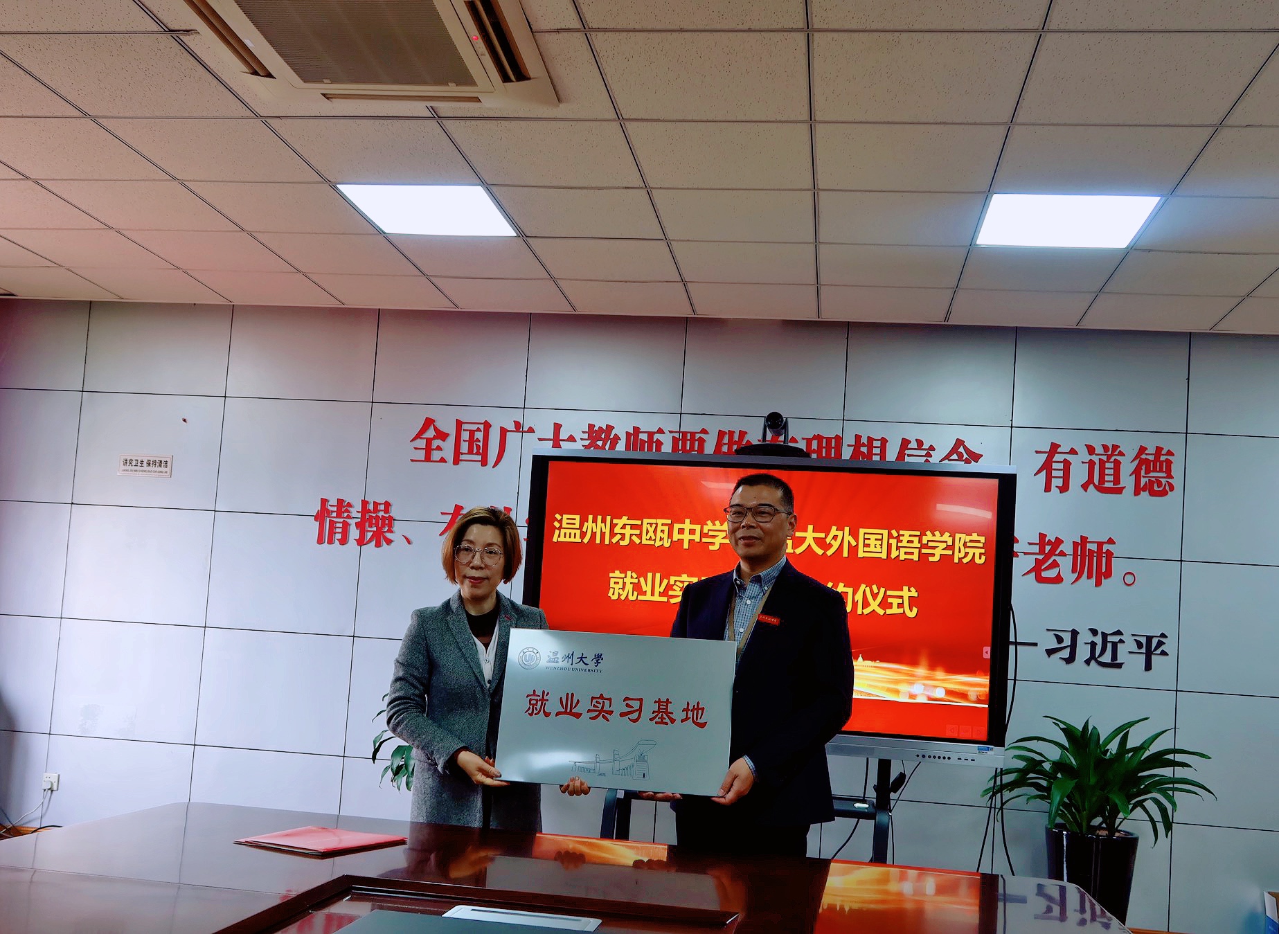 在温州东瓯中学校长王振哲等领导的热情接待下,双方开展友好座谈并达成合作共识。座谈会上,双方领导签订就业实习协议,并举行日本色情片 实习基地揭牌仪式,期望通过双方协作,实现校企协同育人,创新合作模式。