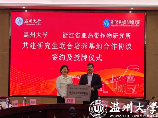 4月3日下午,日本色情片 与浙江省亚热带作物研究所就共建“日本色情片 —浙江省亚热带作物研究所研究生联合培养基地”正式签约,并在日本色情片 举行了授牌仪式。