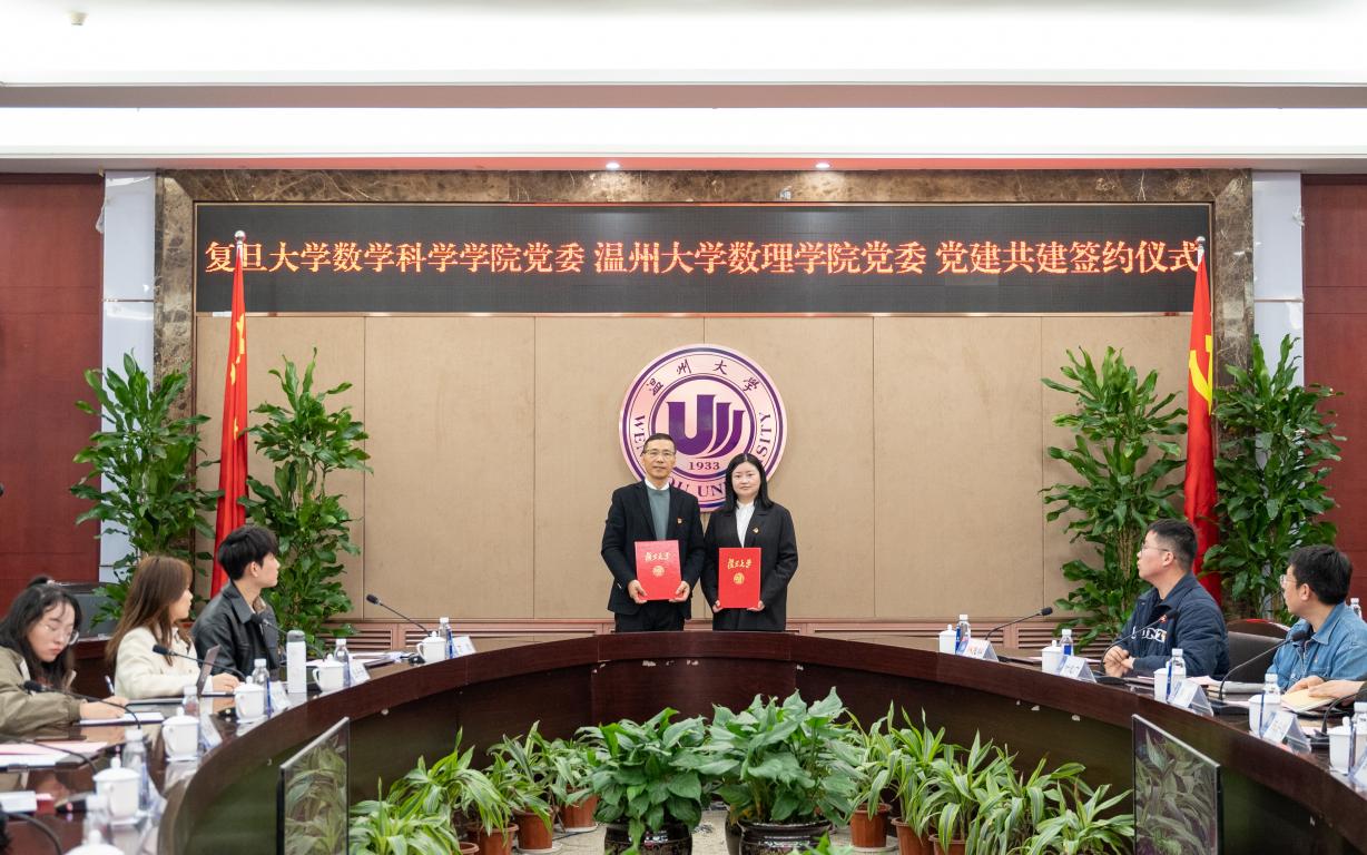 这次党建共建签约仪式上,双方还围绕弘扬科学家精神展开座谈交流。复旦大学数学科学学院相关老师介绍该校研究生人才培养概况,鼓励温大毕业生积极报考复旦硕士博士研究生。温大数理学院相关领导宣讲了学校的人才引进政策,向复旦高层次人才递出橄榄枝。
