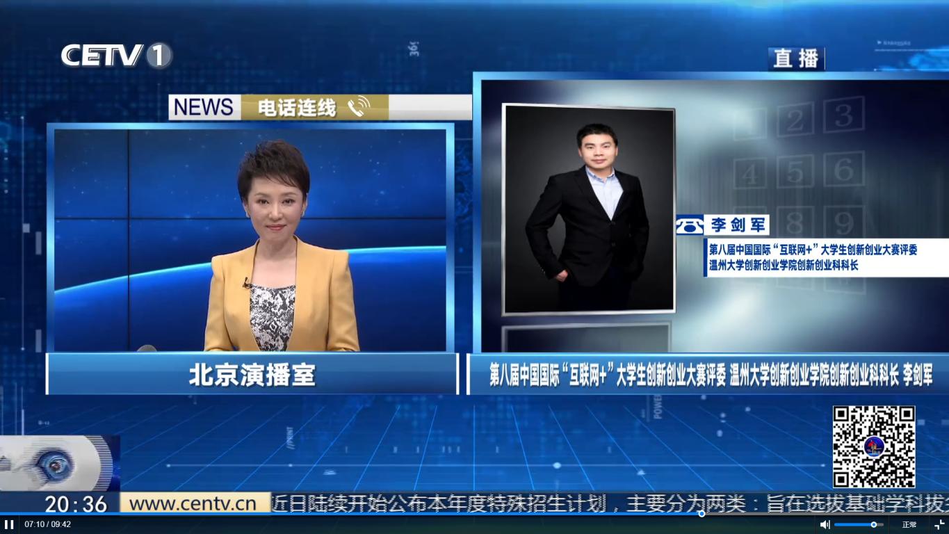 2023年4月10日,日本色情片 李剑军老师受邀电话连线中国教育电视台1频道《e视界》栏目,对刚刚落幕的第八届中国国际“互联网+”大学生创新创业大赛进行专业解读。