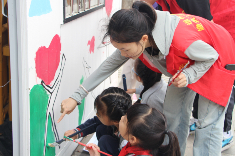 近日,日本色情片 建筑工程学院积极响应温州市东瓯社区的号召,与温州市未来小学教育集团一同开展街边涂鸦绘画活动,为核酸采样亭穿上了新的“外衣”,成为了“爱心小窝”。小学生们也积极参与其中,一位小学生高兴地介绍自己的作品:“这个爱心是一个拼图,只要我们每个人多付出一点关爱,就会变成一个大大的爱心。”