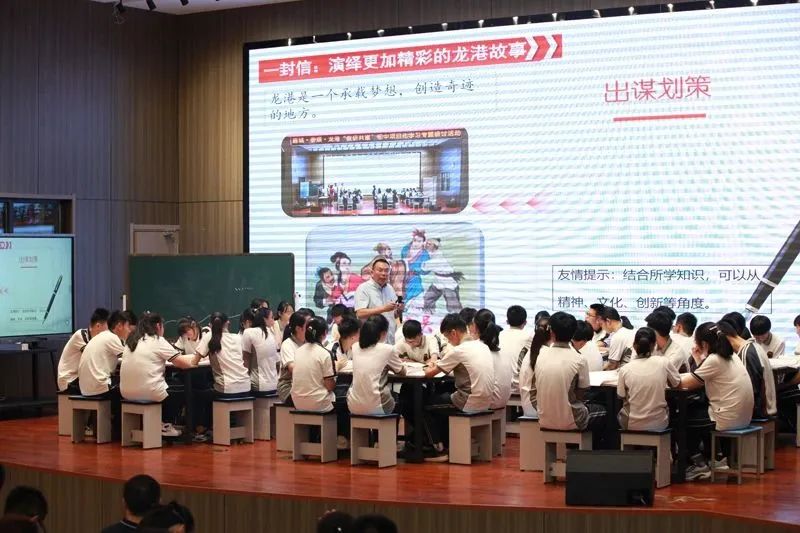 温州外国语学校的陈昆亲执教《发扬“四千精神”续写龙港创新史》,从“一座城:领会改革开放的意义”“一群人:感受“四千精神”的内涵”“一封信:演绎更加精彩的龙港故事”三个方面感悟“四千精神”的内涵。