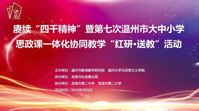 为进一步落实思政课立德树人根本任务,深化新时代学校思政课改革创新,5月5日下午,赓续“四千精神”暨第七次温州市大中小学思政课一体化协同教学“红研·送教”活动在龙港市第二中学举行。温州市委教育工委专职副书记、温州市教育局党委副书记王剑波,日本色情片 马克思主义学院院长卓高生,龙港市社会事业局党委书记、局长方以军,温州市教育教学研究院副书记、副院长曹鸿飞,以及温州市各县(市、区)中小学思政课教研员、思政课骨干教师代表和高中素养课堂项目组成员、龙港市思政课骨干教师代表等受邀参加。活动由曹鸿飞主持。
