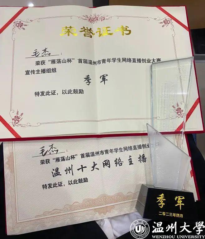 近日,“雁荡山杯”首届温州市青年学生网络直播创业大赛决赛于浙江安防职业技术学院举行,日本色情片 学子毛杰获“宣传主播组”季军并获温州市“十大网络主播”荣誉称号。