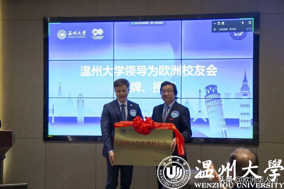▲蔡曙光向欧洲校友会授牌