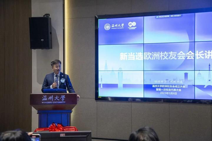 蔡曙光代表学校向欧洲校友会的成立、向当选的第一届理事会成员和会长孙运之表示热烈的祝贺。蔡曙光介绍了近年来学校的建设发展情况。他表示,学校经过90年的沉淀和发展,枝叶繁茂,校友遍布海内外,学校的高质量发展离不开广大海内外校友的大力支持。母校荣则校友荣,校友强则母校强,母校与校友共生共荣,希望欧洲校友会承盛世风华,担时代之责,紧密联系广大欧洲校友,架起校友与校友之间、校友与母校之间沟通、交流、合作的桥梁。