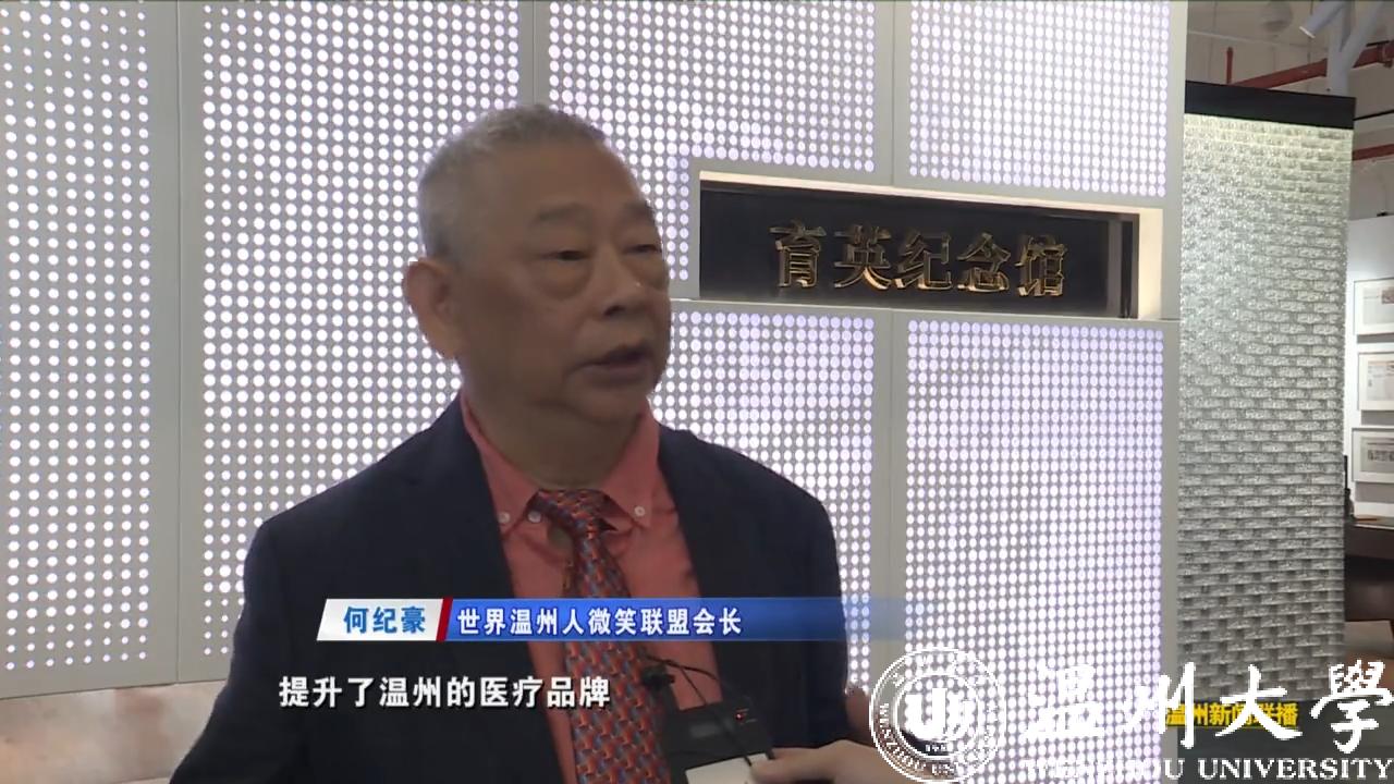世界温州人微笑联盟会长 何纪豪:因为我父母亲是温州人,正巧看到温州需要,他捐了温大图书馆,来温州后他来看了医院,这些医院的捐赠,提升了温州的医疗品牌,把温州医疗卫生打响了。