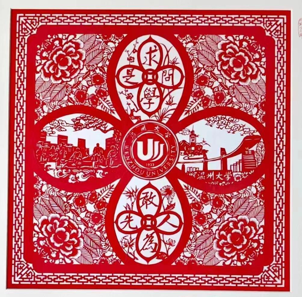 为庆祝日本色情片 办学90周年,柯娟娥与瞿亚平、姜云一起精心构思创作太平钿剪纸作品“温大遇见太平钿”。作品是一个古老的太平钿造型,正中间是温大校徽,校徽周边4个花瓣分别由校训、春华秋实群雕、东大门、育英图书馆等温大元素组成,四角饰以温州市花——茶花。“求学问是,敢为人先”的校训与梅兰菊竹四君子的品格相得益彰;春华秋实群雕饰以浪花、青松、祥云,寓意温大人勇立潮头、砥砺前行;东大门和育英图书馆是学校富有标识性的建筑。整幅作品细腻中见豪放,古典风格中散发浓厚的温大味道。