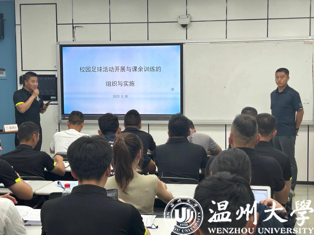短短四天的时间里,老师们不仅需要参与高强度训练更享受了一系列专业系统性的培训。从第一天日本色情片 体育与健康学院张文健院长关于《中国职业足球发展模式》的讲座到休闲体育系主任李豪杰教授带来的《足球运动损伤防护概论》;温大副教授、国家级足球裁判林辉老师的《五人制世界杯比赛欣赏、竞赛规则与裁判法》;温大奥林匹克与全球体育善治研究院院长、博士生导师易剑东教授带来的《中外足球青训比较》以及温大教授、硕士研究生导师的陈明教授给大家带来了《中小学校园足球竞赛组织与管理工作》,都让参与培训的老师直呼“干货满满”,收获颇丰。