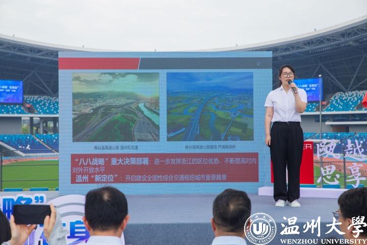 宣讲员赵田恬、王冰倩和金呈怡则不约而同地把焦点落在“交通”上:赵田恬用自己外公亲历的三件事——80年代坐渡轮、2012年乘高铁、2023年行驶于景文高速,投影出温州数十年来在“八八战略”指引下交通建设的大变迁;王冰倩透过一组组数据、一个个先进技术,生动展现温州轨道交通成效;金呈怡从一辆公交车的路线、车型、服务之变,向大家描绘温州公共交通版图之变。