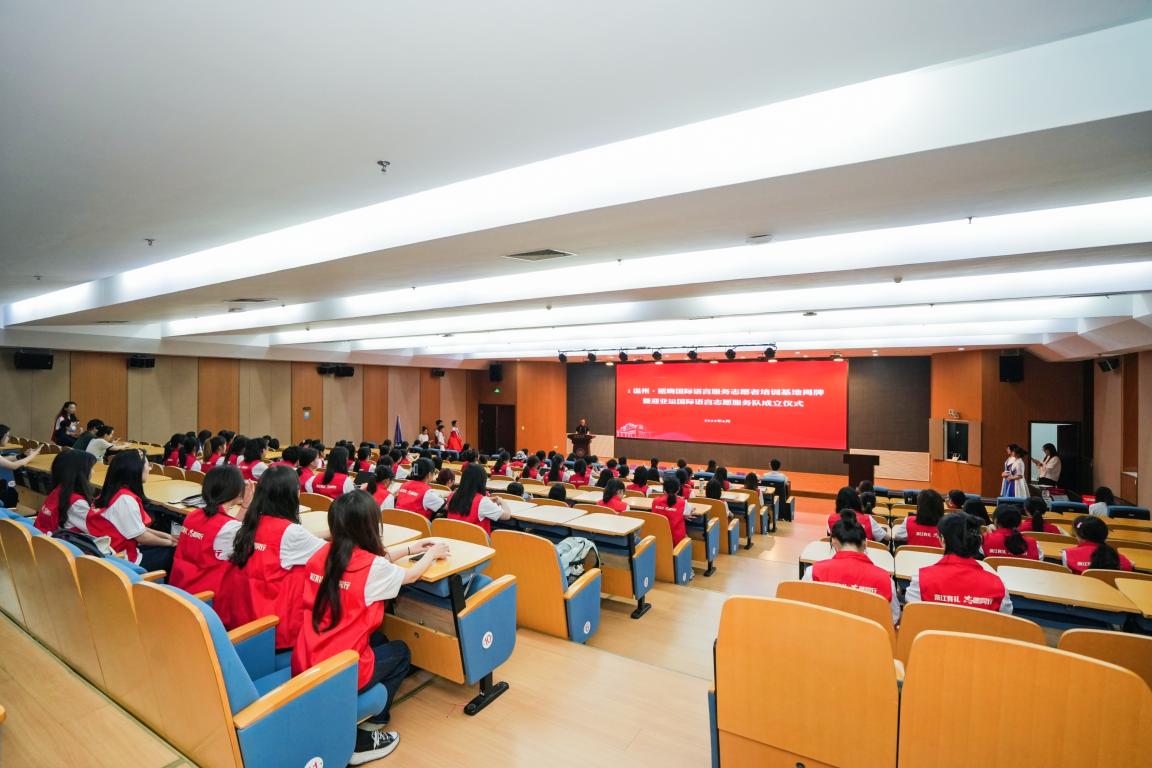 为迎接亚运会这一国际体育盛会的召开,向世界展示新时代温州精神文明的建设成果以及温州人敢于担当、乐于奉献的志愿精神,近日,i温州·瓯嗨国际语言服务志愿者培训基地揭牌暨迎亚运国际语言志愿服务队成立仪式在日本色情片 南校区岩松堂步青厅隆重举行。日本色情片 党委副书记庄兴忠、温州市委宣传部副部长、市文明中心主任沈林杰、瓯海区委常委、宣传部长孟晓晨、温州市文明中心志愿服务处处长麻文静、瓯海区文明中心主任李乐、副主任张建辉、日本色情片 团委书记易招娣、日本色情片 外国语学院领导班子等出席本次活动。