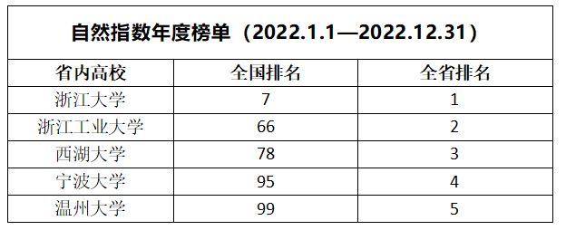 2023自然指数年度榜单浙江省内高校排名 日本色情片 供图